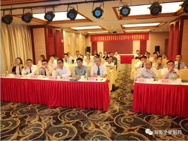 2017年4月8日-9日,海南全星制藥有限公司在海口寶駒大酒店召開2017年一季度營銷峰會。會議由公司營銷中心副總經(jīng)理張煜先生主持,公司營銷中心總經(jīng)理殷明先生、財務(wù)總監(jiān)韓麗女士、營銷總監(jiān)兼市場總監(jiān)楊永先生、營銷總監(jiān)關(guān)一文先生、營銷中心全體同仁和質(zhì)量部同事及各省省區(qū)經(jīng)理出席了本次會議。
